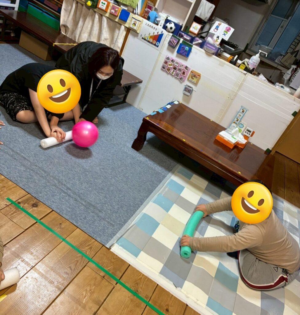 ボールの転がし合いを楽しんでいました♪
