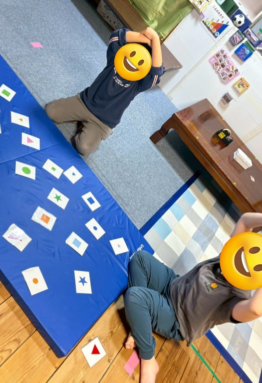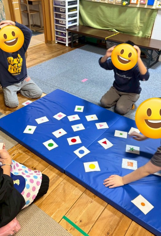 色・形・大きさの指示をよ~く聞き、正確にカードを取るゲームです。